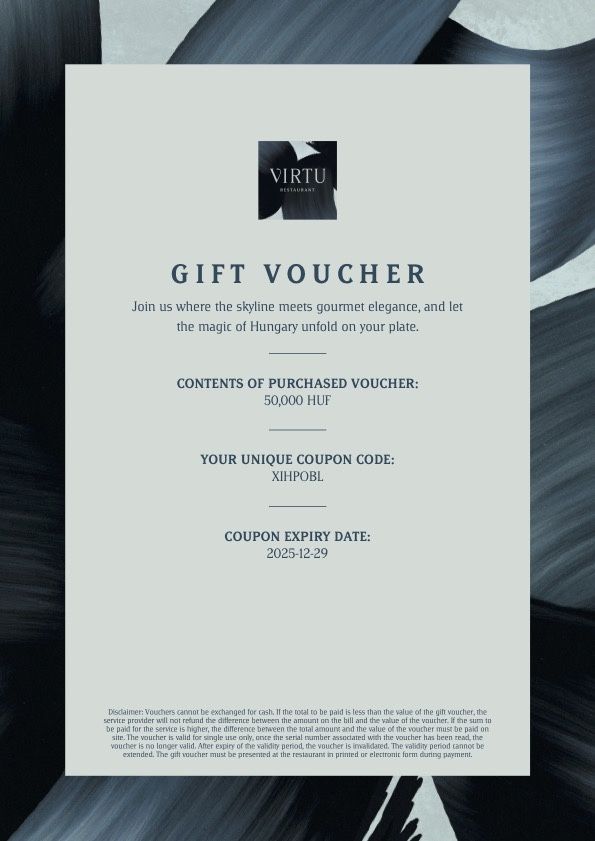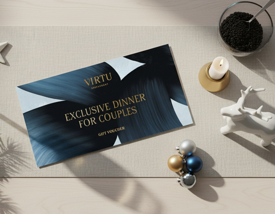 Elevate the joy of giving to a whole new level with the exclusive VIRTU Restaurant gift voucher. Now, you can make it even more special by adding a personalized message. Choose between our elegant standard design or the enchanting Christmas edition, include a heartfelt note, and surprise your loved ones with an unforgettable gastronomic experience!