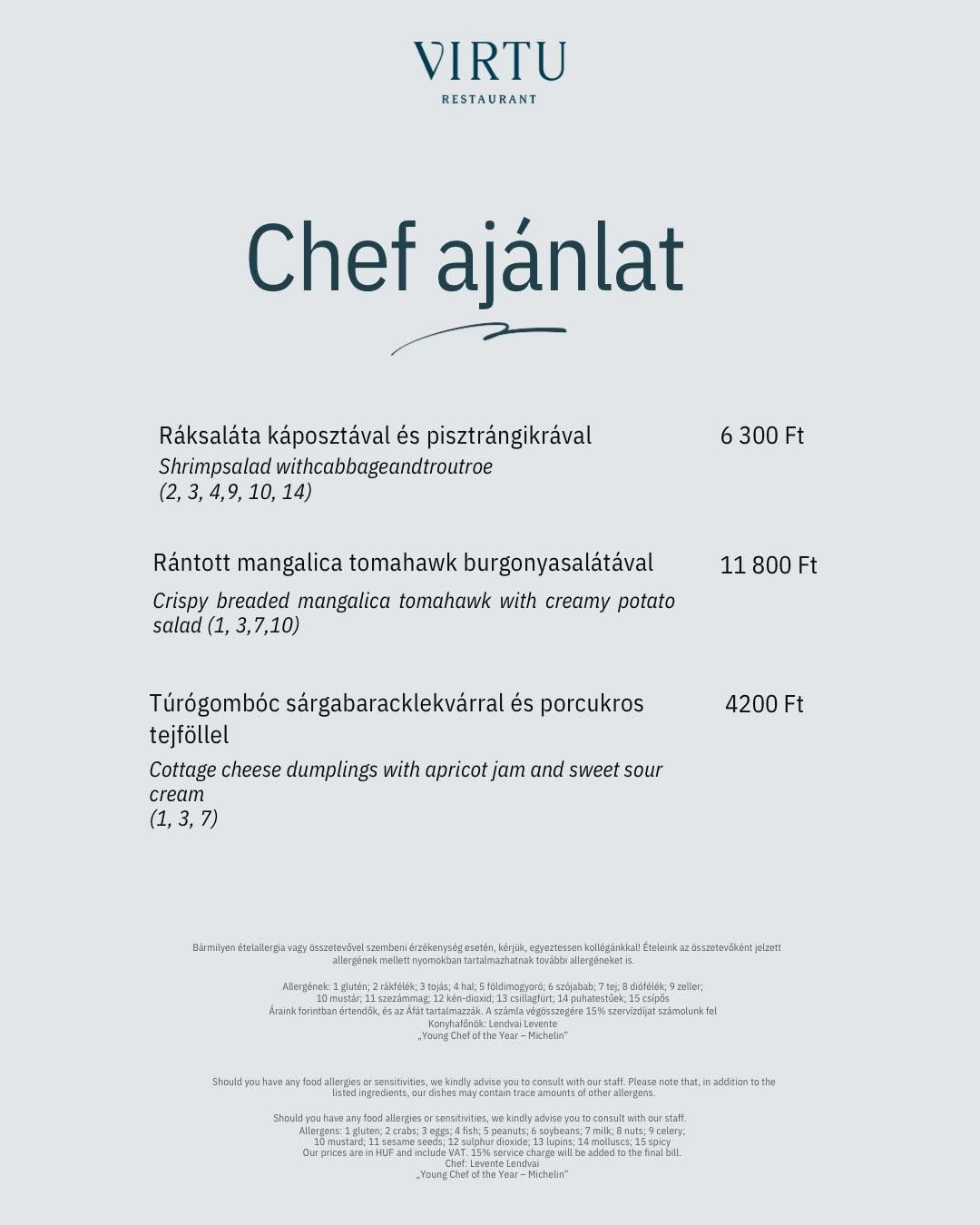 Merüljön el egy kivételes kulináris utazásban, ahol a hagyományos magyar ízek modern eleganciával találkoznak. Ahogy ízlelgeti a legfinomabb helyi és regionális alapanyagokból készített, aprólékosan összeállított fogásokat, hagyja, hogy magával ragadja Budapest lélegzetelállító panorámája. A VIRTU séfje, Lendvai Levente, akit a Michelin Guide Hungary 2024-es kiadása az év fiatal séfjének választott.