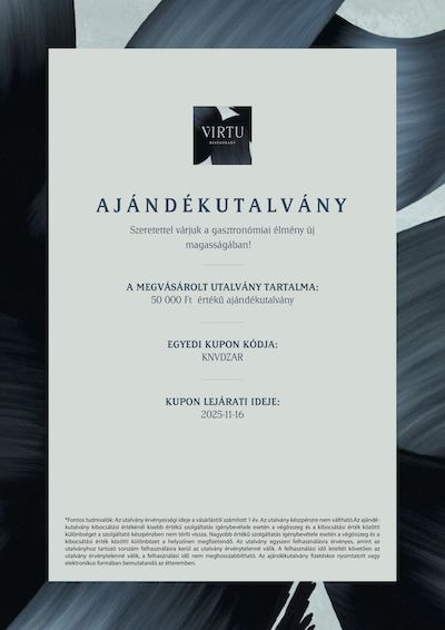 Emelje az ajándékozás élményét új szintre a VIRTU Restaurant exkluzív ajándékutalványával, amelyet mostantól személyre szabott üzenettel is különlegessé tehet. Válassza ki az Önnek leginkább tetsző dizájnt, adjon hozzá egy szívhez szóló üzenetet, és lepje meg szeretteit egy felejthetetlen gasztronómiai élménnyel!