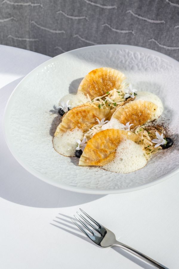 A kompozíciót sült zellerkrém, fermentált fekete fokhagymakrém és zellervelouté teszi teljessé, amelyek gazdag, mégis elegáns ízrétegeket adnak ennek a modern vegetáriánus tésztaételnek.