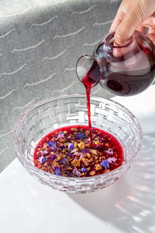Ez a gyümölcsleves édesség akkor mutatja meg valódi arcát, amikor a vendég elkeveri benne a joghurtot – így válik az átlátszó konszomé egy nosztalgikus, klasszikus meggylevessé. Ez a hideg leves tökéletes nyári fogás, frissítő, gyümölcsös édesség, amely egyensúlyban tartja a klasszikus desszert-emlékeket és a modern konyhaművészet elvárásait.