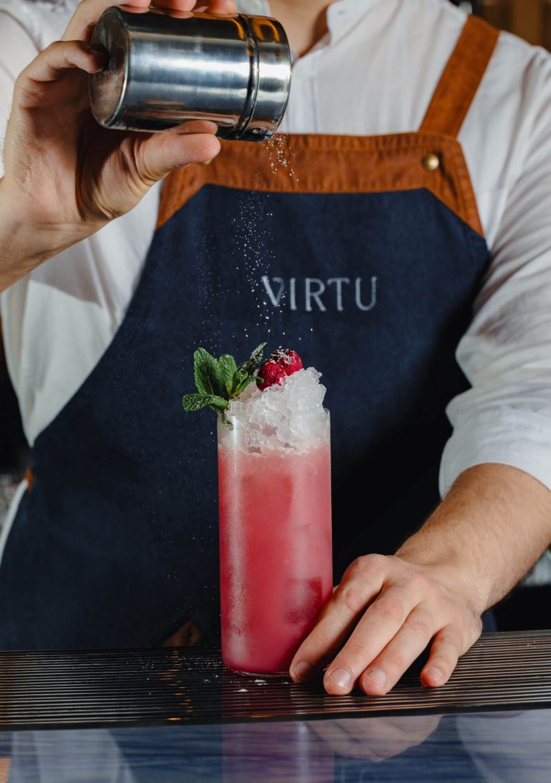 A Virtu séfje, Lendvai Levente a hagyományőrzés elkötelezett híve. Ezt a szemléletet a klasszikus koktélok bemutatásával tudjuk a legjobban kifejezni, ezért a bárban is nagy hangsúlyt helyezünk a tradíciók megőrzésére, beleértve a hazai hagyományokat is. Bár nemzetközi ízeket képviselünk, az étteremhez hasonlóan a bárban is kiemelten kezeljük a magyar, illetve a környező területek alapanyagait. A mi arany középutunk az lett, hogy megalkottuk az öt legnagyobb klasszikus koktél különböző változatát a nemzetközi, illetve a magyar ízlésnek megfelelően is.