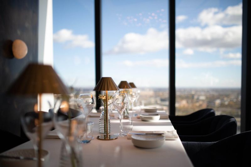 A 150 férőhelyes fine service étterem az ország legmagasabb épületének látvány-felvonójával közelíthető meg.