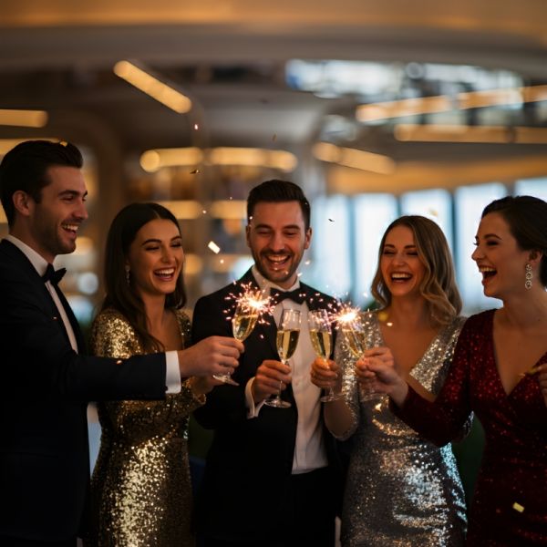 Élvezze a kifinomult Moët & Chandon pezsgővel kísért szilveszteri vacsorát, amelyet egy elegáns öt fogásos gourmet menü egészít ki.